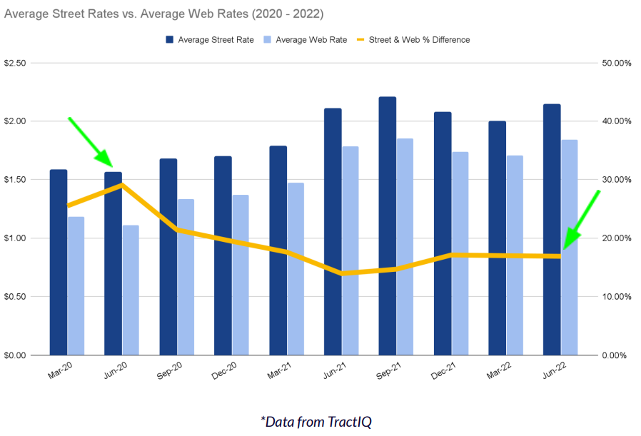 - A tight spread between street and web rates typically signals more self-storage demand in the market because operators don’t need to discount web rates as much when more customers are renting storage